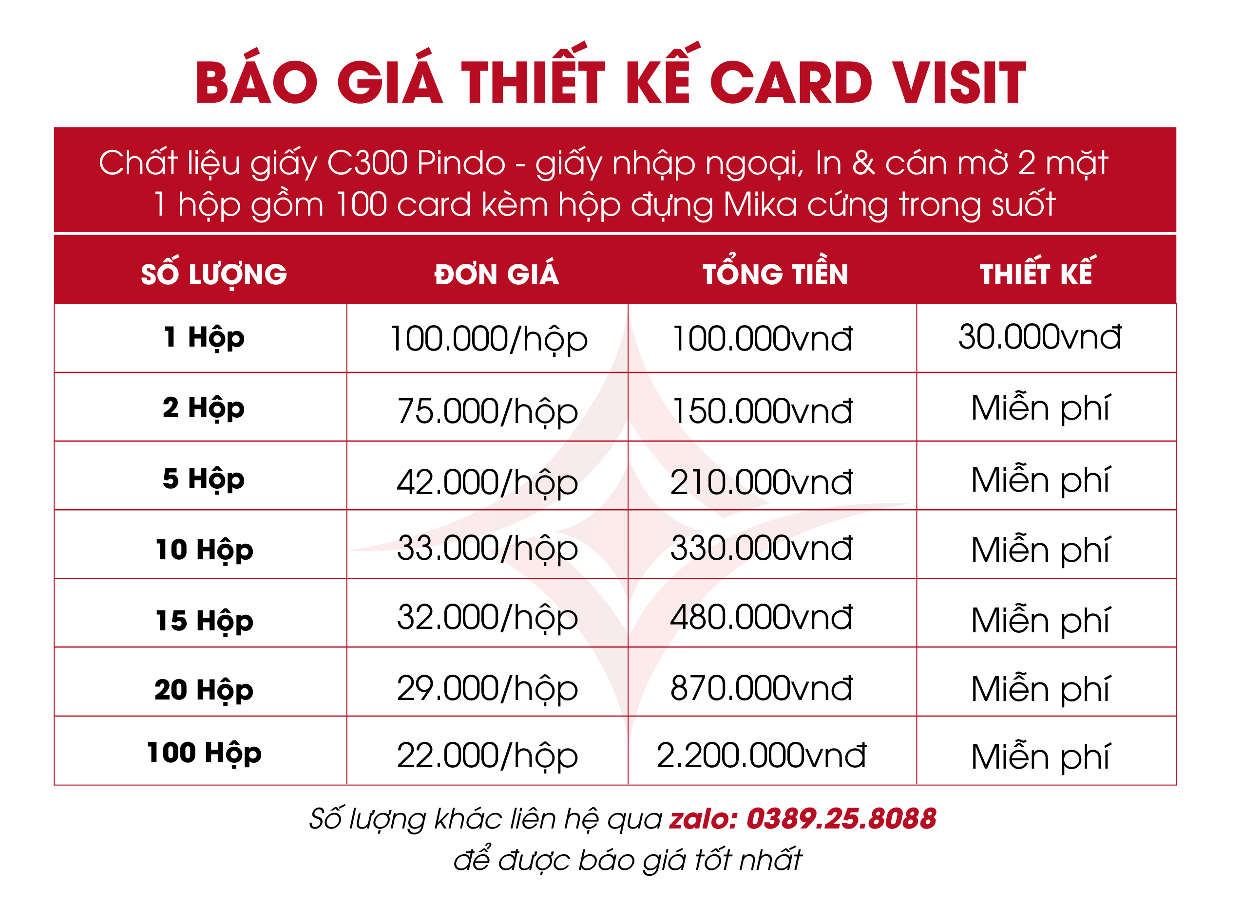 - Chất liệu giấy: Couches 300gsm – pindo giấy nhập ngoại, hoặc giấy Couches 300gsm dày cứng, giấy chuyên in card cáng màng mờ 2 mặt sang trọng và bền đẹp